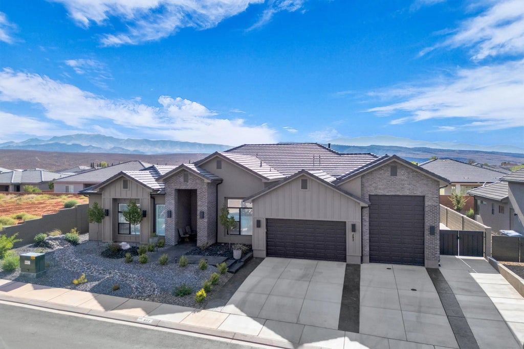 Luxury home with breathtaking red rock views, a massive 45-ft RV garage, and a resort-style heated saltwater pool! Lightly lived in and feels brand new with high ceilings, designer finishes, and an open-concept layout. The backyard oasis is built for entertaining, featuring a sparkling pool, gas firepit, covered patio, and gas BBQ hookup. Inside, the chef's kitchen impresses with GE Cafe appliances, a commercial-grade side-by-side fridge/freezer, and an oversized walk-in pantry. Accordion glass doors open the great room to the backyard, creating a seamless indoor-outdoor retreat. Move-in ready and available furnished--ask about the custom furniture package! Close to trails, Tuacahn Amphitheatre, Snow Canyon, Gunlock Reservoir, and Kayenta Art Village.4th Bedroom is currently the office