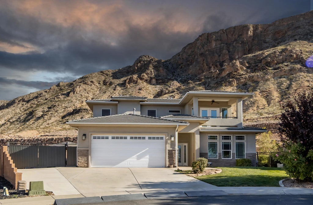 Enjoy sweeping views of Pine Valley Mountain, Yant Flat, and the red rock cliffs from this 2,622 sq ft Hurricane home with no HOA. Built in 2014 and gently lived in, it offers 10' ceilings, wood-grain tile, 2x6 construction, and full accessibility with a private elevator, widened doors, and a roll-in shower. The kitchen features a large pantry, double oven, and wine fridge. Upstairs includes a second living area, laundry, and room to add a 3rd bedroom and bath. RV parking, extra garage storage, and a backyard gazebo complete the home, along with a quiet setting near trails and outdoor recreation.
